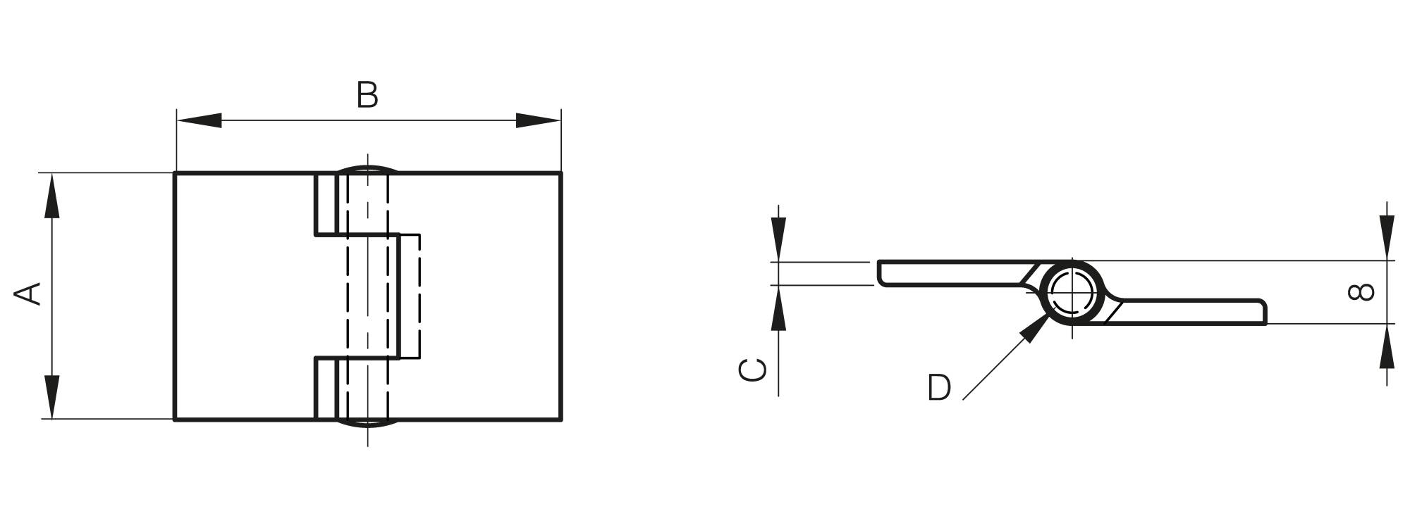 Aluminium hinges with reversed leaves - 50 mm width