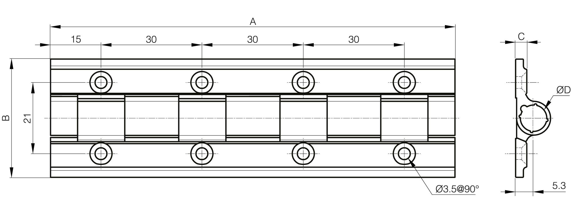 Charnières à ressort profil aluminium 0,90 N.m - diamètre 8