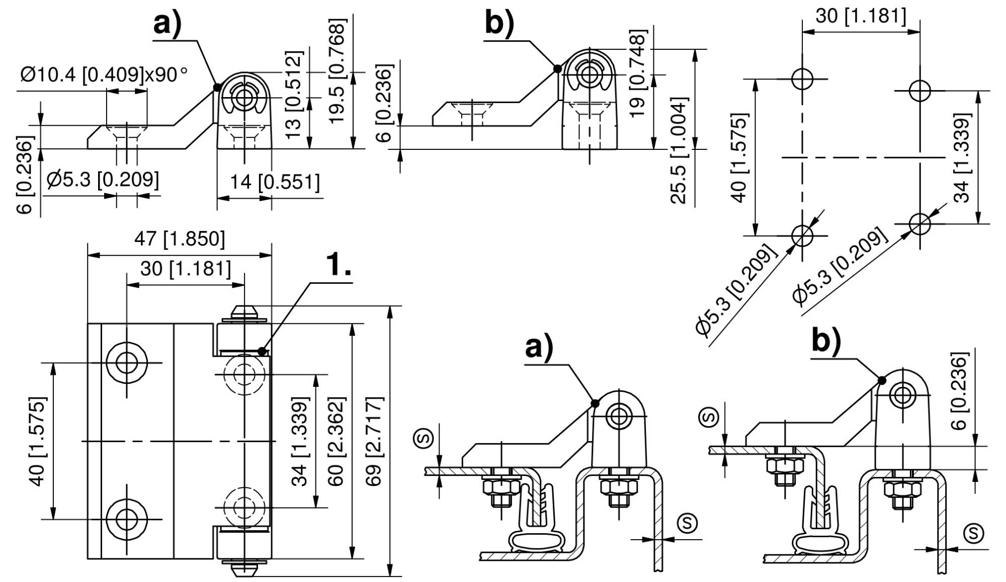 Charnière avec bagues polyamide