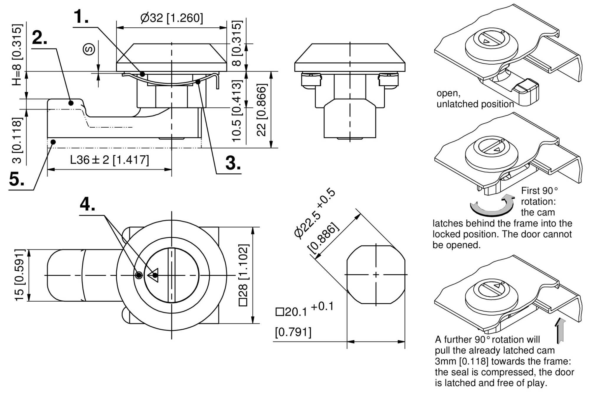 Quart de tour à compression pour découpe 20.1, très compact et installation sans outil