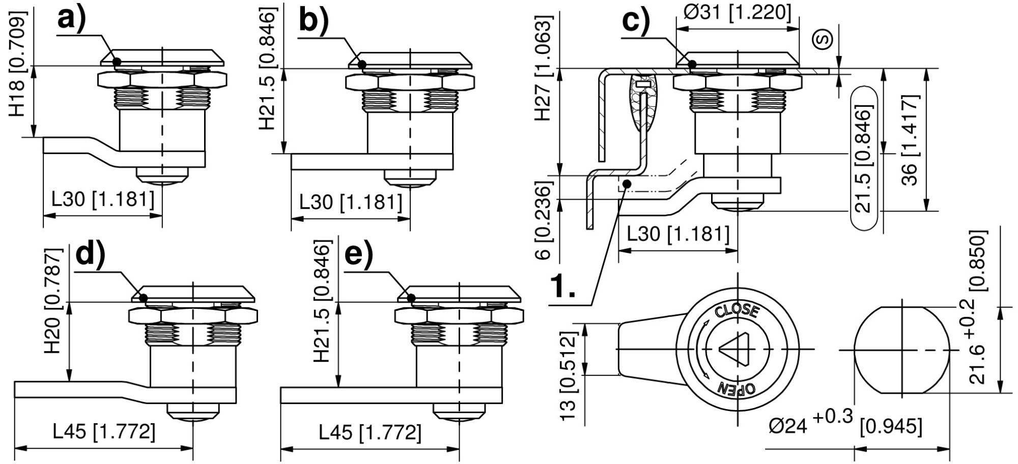 Attention : les quarts de tour sont livrés non-assemblés
