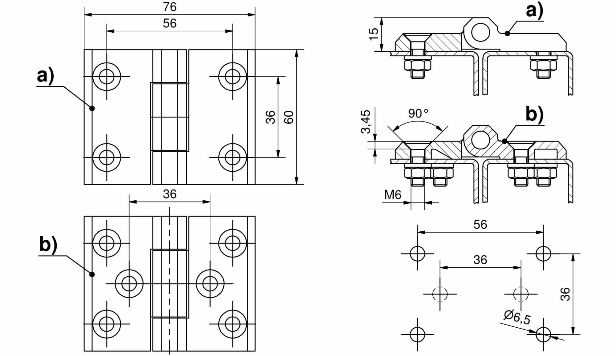 Charnière 76x60 270° Pr01